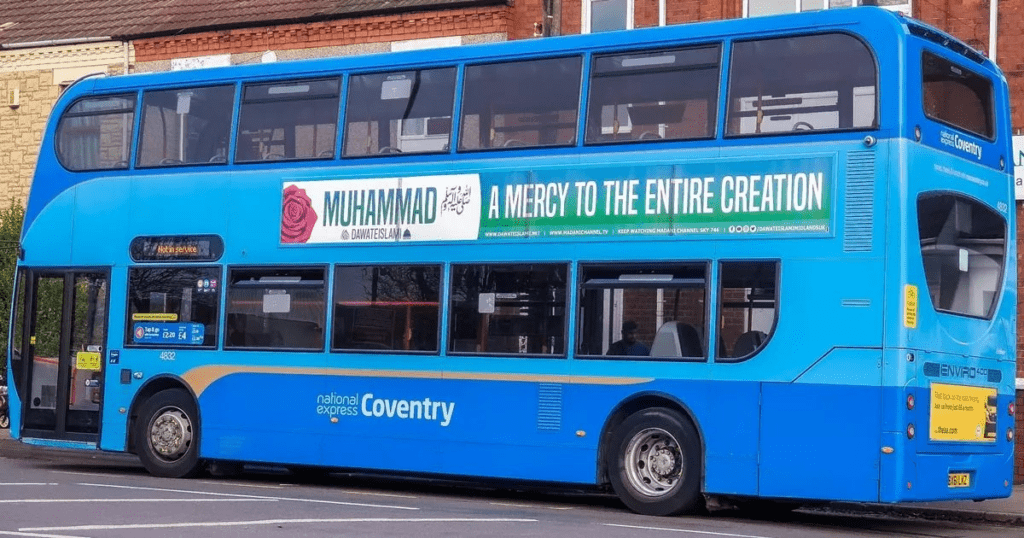 The prominent bus banners, placed strategically on public transportation vehicles, seek to engage a wide audience and encourage dialogue about the peaceful teachings of the Prophet Muhammad (ﷺ). By featuring his name and a message of peace, Dawat-e-Islami UK aims to create an atmosphere of inclusivity and understanding, inviting people from all walks of life to learn more about the Prophet’s teachings and their relevance in today’s society.