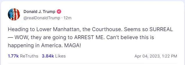 Before leaving to Manhattan, the former US president wrote on social media.