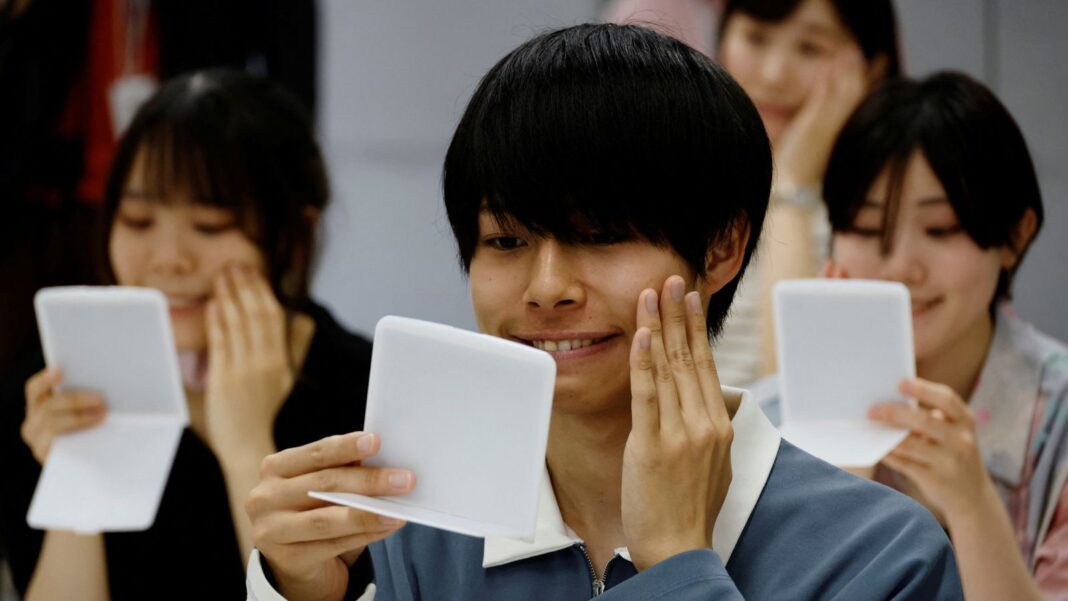 Therefore, many young people like Himawari Yoshida, are enrolling in smile training sessions to prepare themselves for the job market.