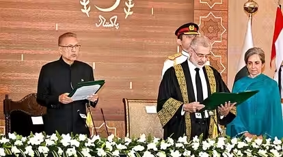 During the oath-taking ceremony, Justice Isa’s wife stood next to him as he pledged to uphold the rule of law, abide by Pakistan’s Constitution, and ensure justice during his tenure as the country’s top judge until October 25, 2024.