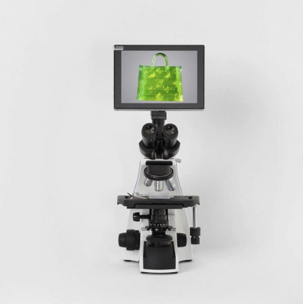 MSCHF’s groundbreaking creation challenges the notion of handbag size, pushing the boundaries of design and concept. With the lime-green monogram bag, the collective highlights how a once-functional object can evolve into an abstract symbol of prestige as it diminishes in size. The handbag’s diminishing dimensions represent the increasing abstraction of its object status, ultimately transforming it into a pure brand signifier.