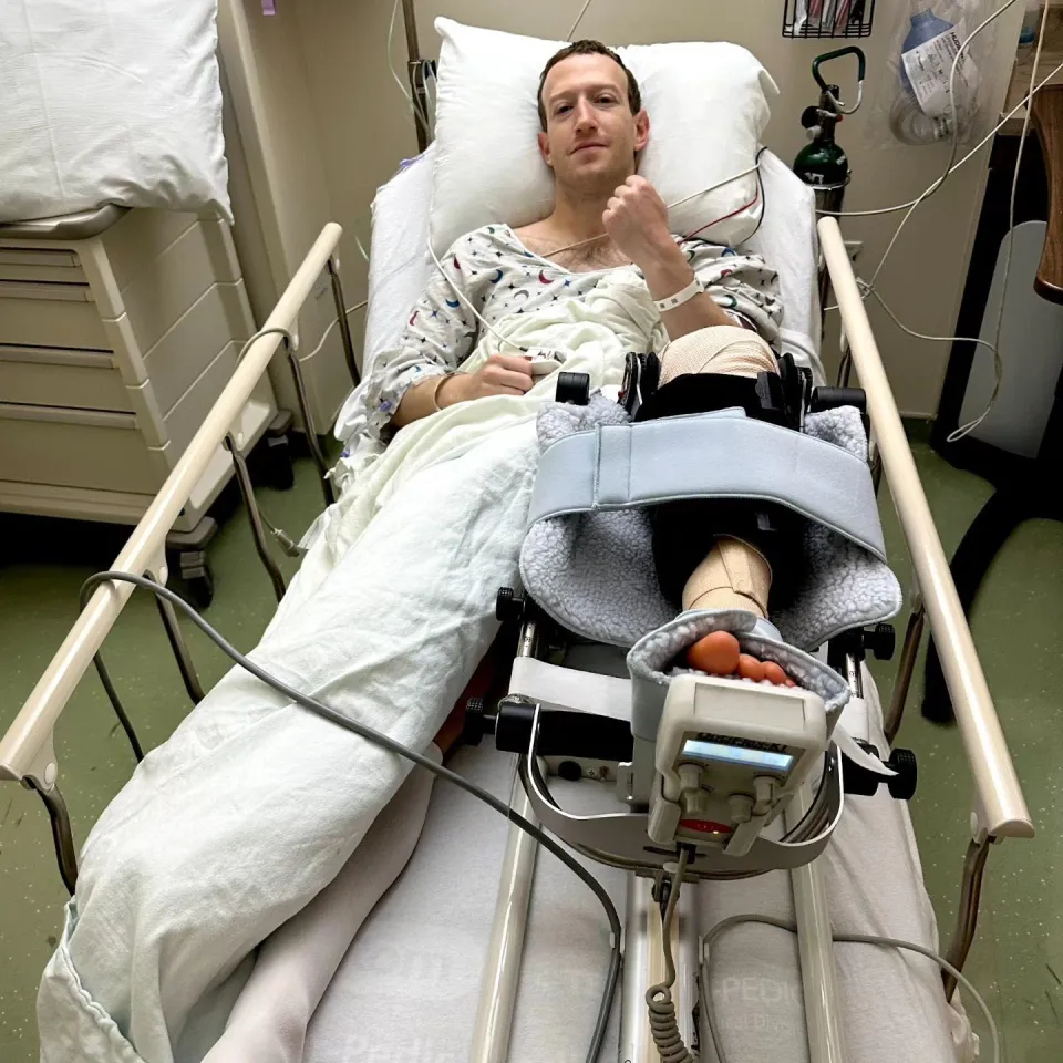 Mark Zuckerberg posted pictures from a hospital bed after having surgery on his knee. He injured his ACL (a ligament in the knee) while training in mixed martial arts. In an Instagram post, Zuckerberg mentioned his gratitude for the medical team who took care of him.