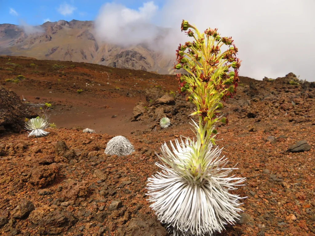 The Mauna Kea silver sword is an exclusive resident of Mauna Kea, one of the tallest mountains on Earth. In this solitary location, at high altitudes and amidst the rugged volcanic terrain, this delicate flower finds its home. Its existence is confined to this particular spot, making it a true symbol of Hawaii’s natural heritage.