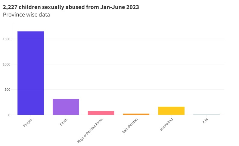 Breaking down the cases by province, the report indicates that Punjab had the highest number of reported incidents with 1,648 cases, followed by Sindh with 314 cases, Balochistan with 24 cases, KP with 74 cases, AJK with 4 cases, and ICT with 161 cases.