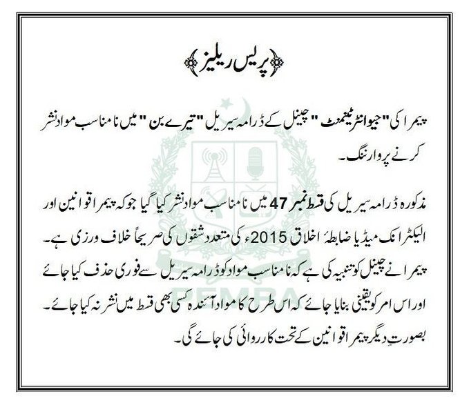 The controversy surrounding ‘Tere Bin’ has prompted PEMRA to step in and address the concerns raised by viewers. The regulatory body, tasked with ensuring responsible and ethical content in electronic media, has deemed certain scenes in the drama as objectionable and has called for immediate action.
