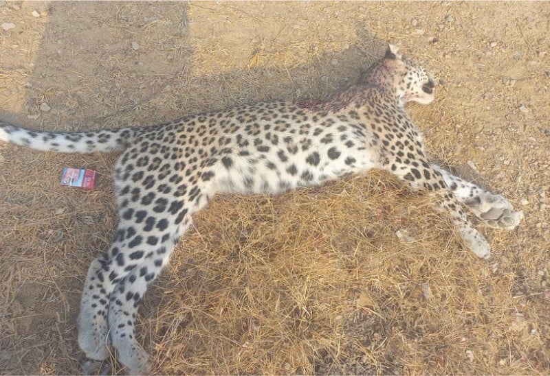 In Sui area of Dera Bugti, Balochistan, locals shot and killed a rare leopard. This incident happened recently and the leopard was shot multiple times.
