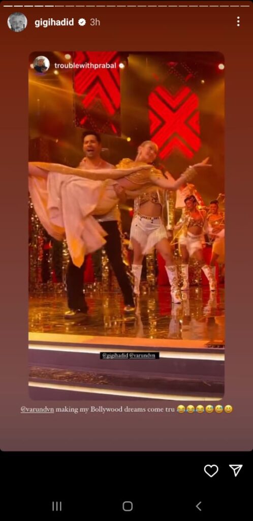 Gigi Hadid reacted to the viral video on her Instagram handle. Taking to her Instagram stories, she wrote, “@Varundvn making my Bollywood dreams come true.”
